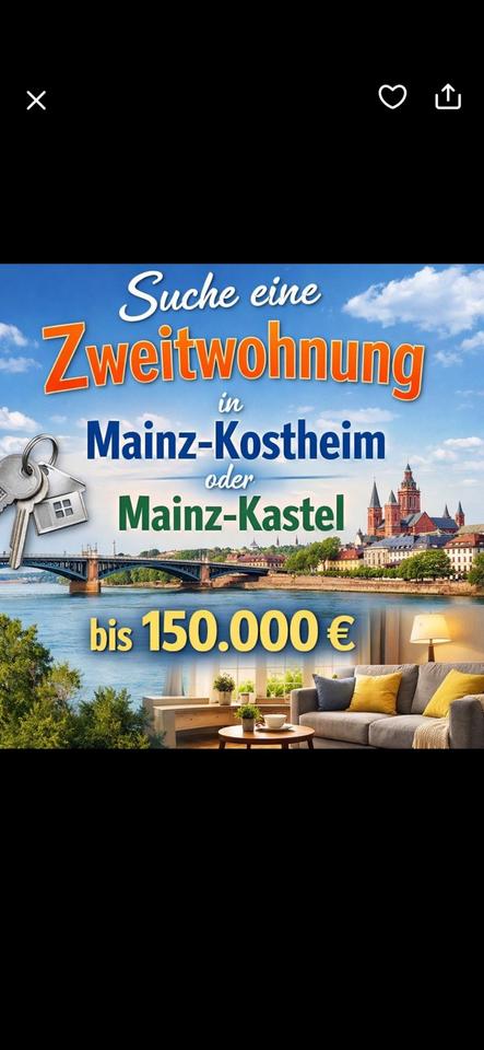 Ich suche eine schöne Eigentumswohnungen in Mainz-Kostheim oder Mainz-Kastel als Zweitwohnung für meine Familie . Kann gerne auch etwas mehr kosten ! Ein schönes Appartement oder eine 2-3 Zimmerwohnung. Über... mehr erfahren