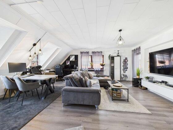 Diese helle und großzügige 2-Zimmer-Wohnung mit ca. 95 m² Wohnfläche befindet sich im 2. Obergeschoss eines Mehrfamilienhauses in ruhiger und naturnaher Lage von Nidderau.